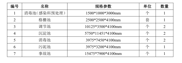 医院废水主要包括医疗废水(主要来自于病房、门诊、医技等)、非医疗废水(非病区生活废水、地下车库冲洗废水等)、食堂废水和特殊医疗废水(口腔科、检验科废水、病理科化学废液)。医疗废水、非病区生活污水统一收集经化粪池处理,食堂废水、地下车库冲洗废水经隔油沉淀处理后和中央空调冷却塔排水一起进入医院自建的污水处理站(处理规模为1500m³/d),经处理达到《医疗机构水污染物排放标准》(GB18466-2005)排放限值(日均值)中的预处理标准、赤坎水质净化厂接管要求中的较严标准后排入市政污水管网,最终进入赤坎水质净化厂。